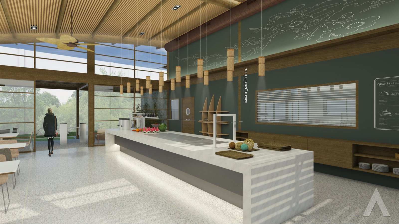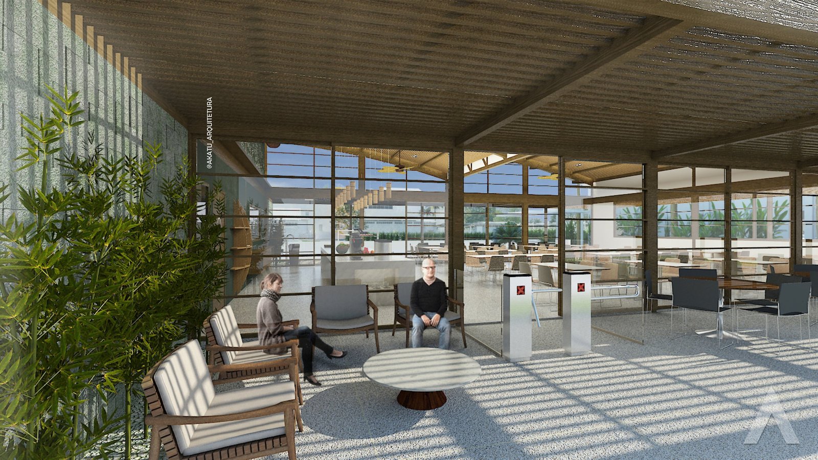 Requalificação do refeitório, mantendo os atributos do projeto estrutural em madeira da Ycon.